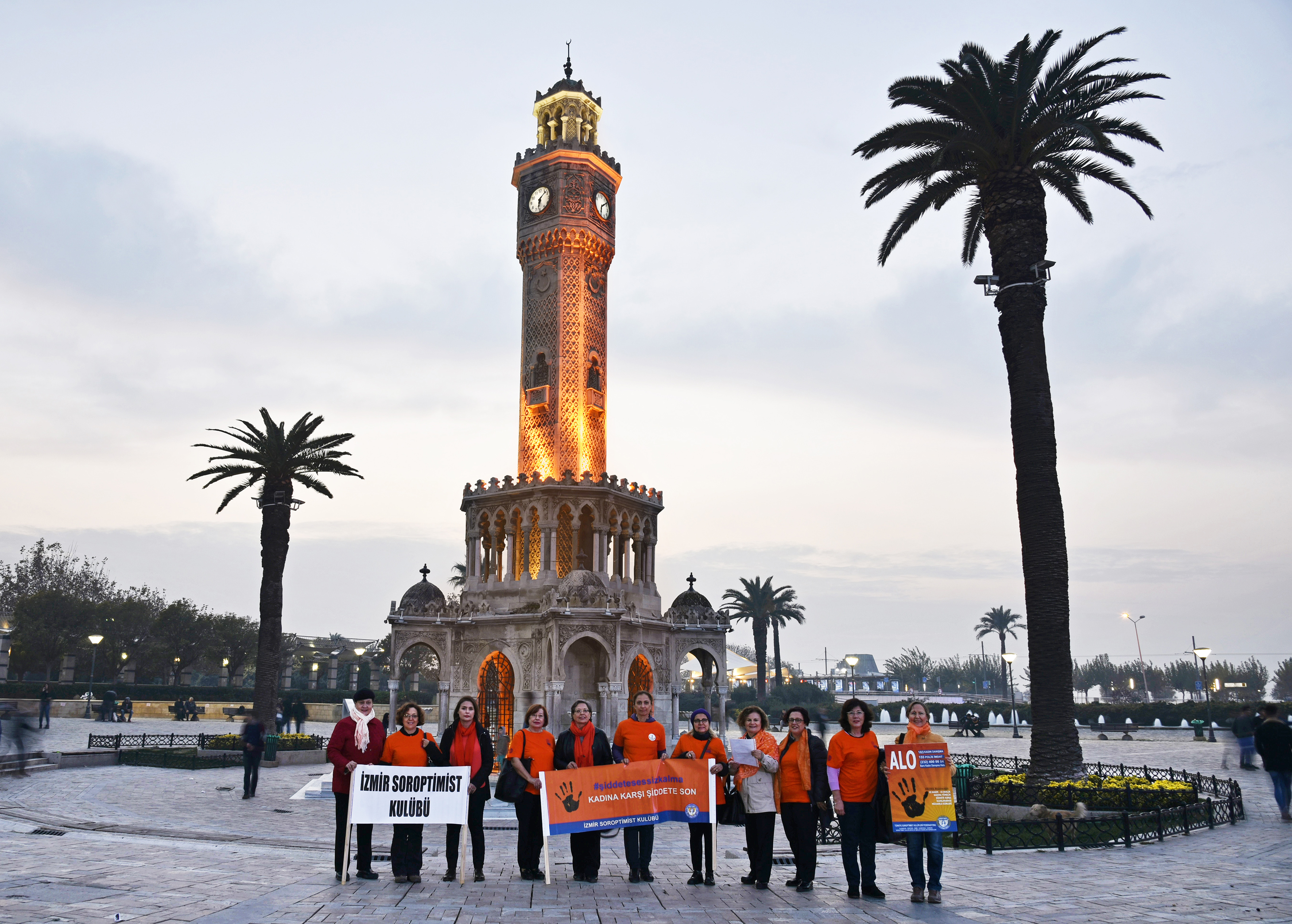 Izmir’s famous Clock Tower is the symbol of the city. It is now lit in orange, starting on the evening of November 25th, International Day for the elimination of violence against women, as a project of Izmir Club within the context of 16 Days of Activism Against Gender-based Violence. The Soroptimists partnered with the Municipality of Izmir, Directorate of Studies on Women, to implement this project.
