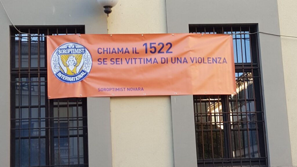 – en affichant une bannière orange sur la façade de la municipalité de Novara avec le logo Soroptimist et le message « Appelez le 1522 si vous êtes victime de violence »;