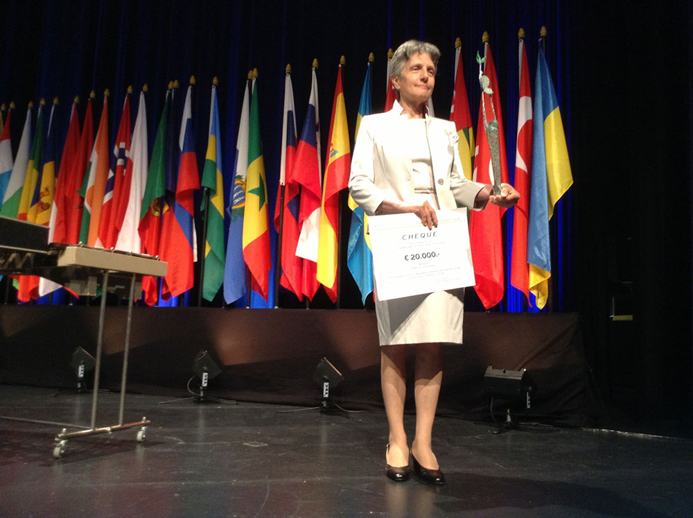 Silvana Arbia recevant le Prix de la paix du SIE à Berlin en 2013