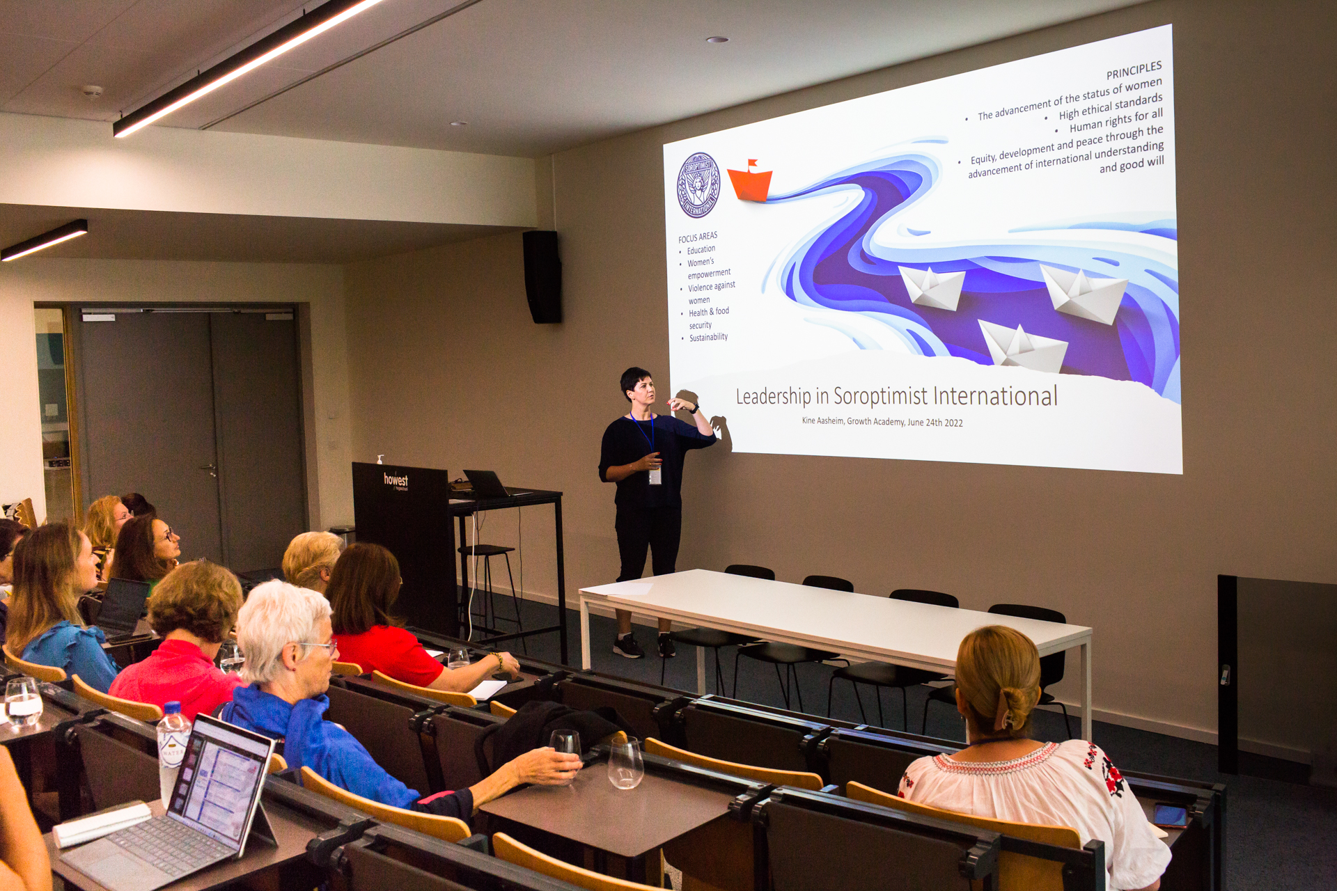 Pour faire face à ce défi, le Soroptimist International d’Europe a créé la Growth Academy (GA) l’année dernière. En juin 2022, presque 100 membres se sont réunis à Courtrai, en Belgique, pour participer à notre première GA. Ces membres avaient notamment été sélectionnés par les Présidentes d’Unions et de Clubs individuels pour leur propension à embrasser et à développer une nouvelle forme de leadership inclusif et à définir des stratégies renouvelées.