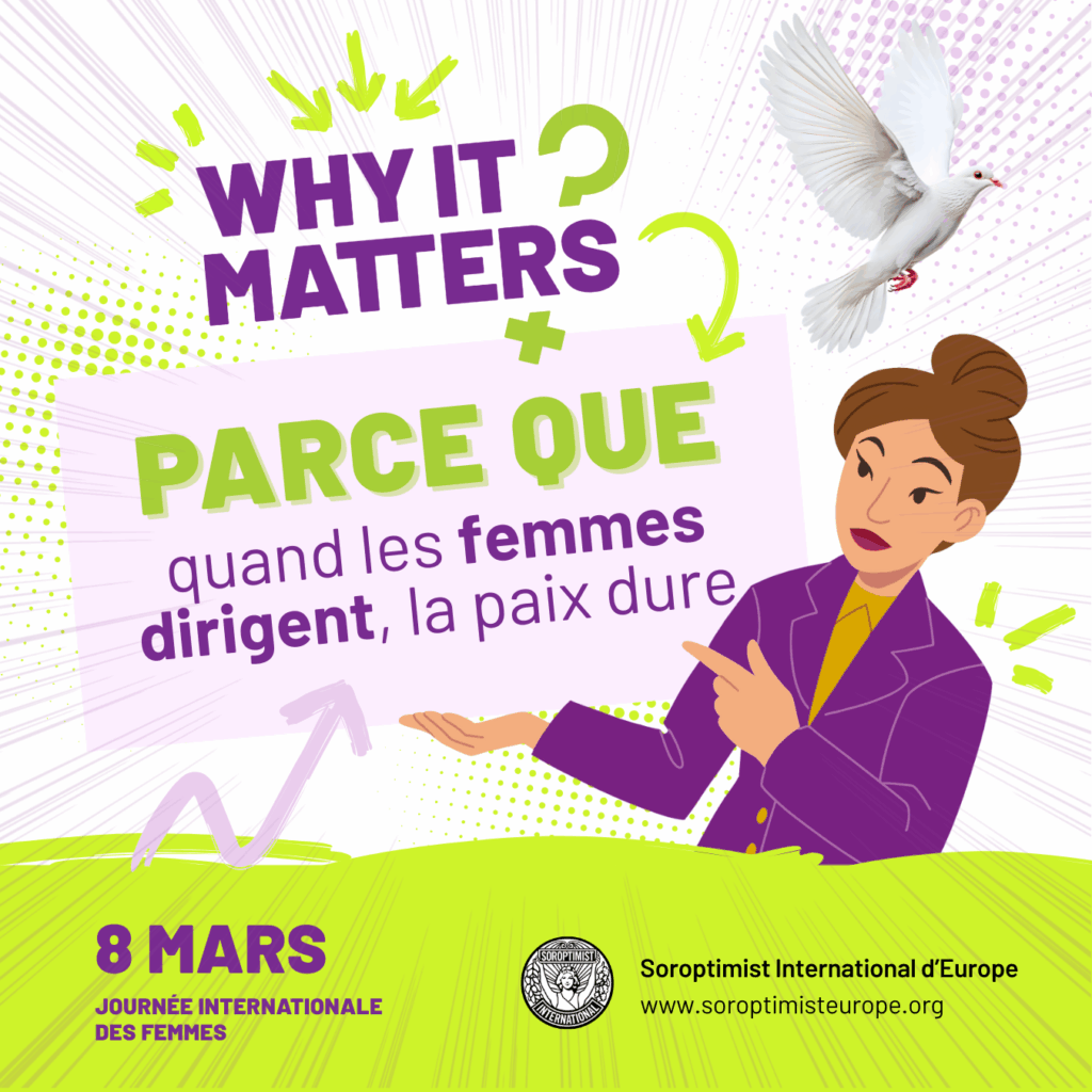 Chaque année, nous menons deux campagnes de lobbying phares - READ THE SIGNS et WHY IT MATTERS – dans le cadre de notre engagement permanent à promouvoir l’égalité des genres et à mettre fin à la violence à l’encontre des femmes et des filles. Ces campagnes mobilisent les Soroptimist à travers l’Europe pour sensibiliser, influencer les politiques et conduire le changement aux niveaux local, national et international.