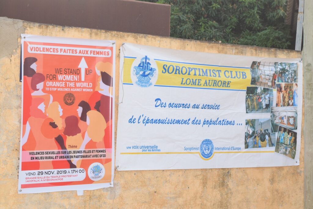 Au mois de novembre 2019, le club Soroptimist de Lomé Aurore (Togo) a lancé une campagne sur le thème: violences sexuelles faite aux filles en milieu urbain et en milieu rural élargi / sensibilisation au phénomène des jeunes filles exploitées sexuellement qui sont contraintes d’échanger des rapports sexuels (souvent non protégés) contre de l’argent ou des biens de tous genres.