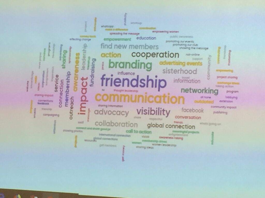 Les sujets de visibilité, de marque et d’extension ont également été abordés lors de l’atelier. Il est important de présenter les problèmes des femmes et l’action Soroptimist au monde extérieur afin de promouvoir notre impact mondial et d’attirer de nouveaux membres. Pour le moment, l’idée est d’avoir une plate-forme interne ouverte seulement aux Soroptimist. Cependant, nous devrions tous utiliser beaucoup plus les médias sociaux pour informer les autres du travail et des activités de Soroptimist.