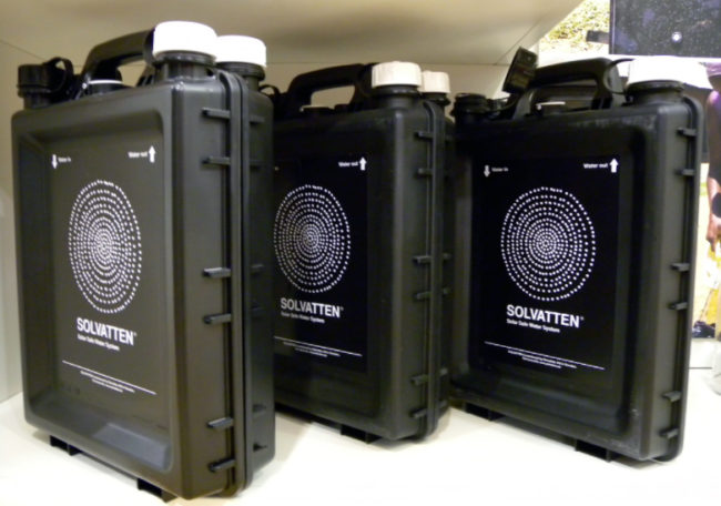 Le Solvatten est une innovation suédoise qui utilise l’énergie solaire pour purifier l’eau contaminée. Après quelques heures au soleil, l’eau est chaude et exempte de pathogènes qui provoquent des maladies telles que la dysenterie, la salmonelle et le choléra. Solvatten économise du temps, de l’énergie et de l’argent, tout en protégeant l’environnement. Un Solvatten peut être utilisé plusieurs fois par jour et est facile à utiliser et à transporter. Aucune batterie, pièce de rechange ou produit chimique n’est requis.