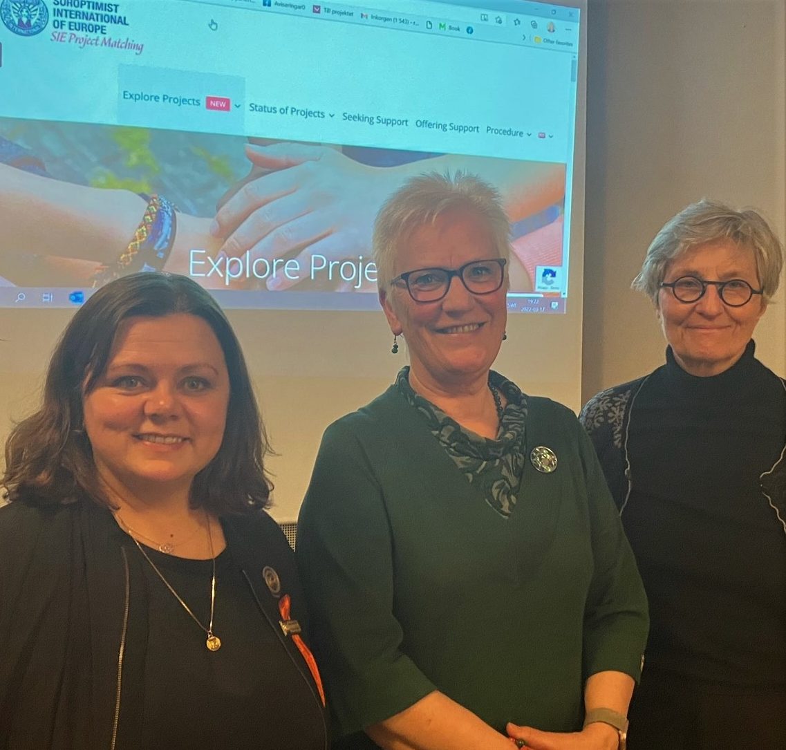 Nous coopérons et nous discutons de manières de travailler dans le cadre de l’ODS 1, Lobbying et Programme. Par exemple, en février, la Directrice de Programme du SIE Sandra Gonzalez Sköld a été invitée à venir dans mon club de Stockholm City avec la Première présidente adjointe du Parlement suédois, Åsa Lindestam. Elles ont parlé avec les membres du club de sujets tels que l’autonomisation des femmes, la violence à l’égard des femmes et les femmes en zones de guerre.