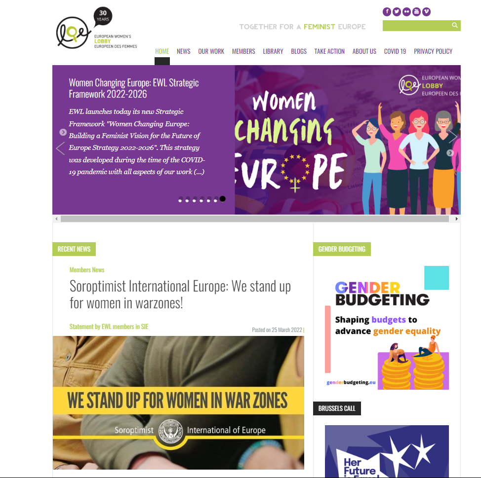 Je suis Gertrud Åström, l’une des trois Représentantes du SIE, et je représente notre organisation auprès du Lobby européen des femmes (LEF). Le Lobby européen des femmes a été créé il y a 30 ans en réponse à une conscience croissante du besoin de défendre les intérêts des femmes au niveau européen. Il s’agit du plus grand réseau d’associations de femmes en Europe (il en compte plus de 2 000) et le SIE en est un membre important. Via le LEF, le SIE peut toucher des milliers des femmes et appeler à l’action et à la solidarité.