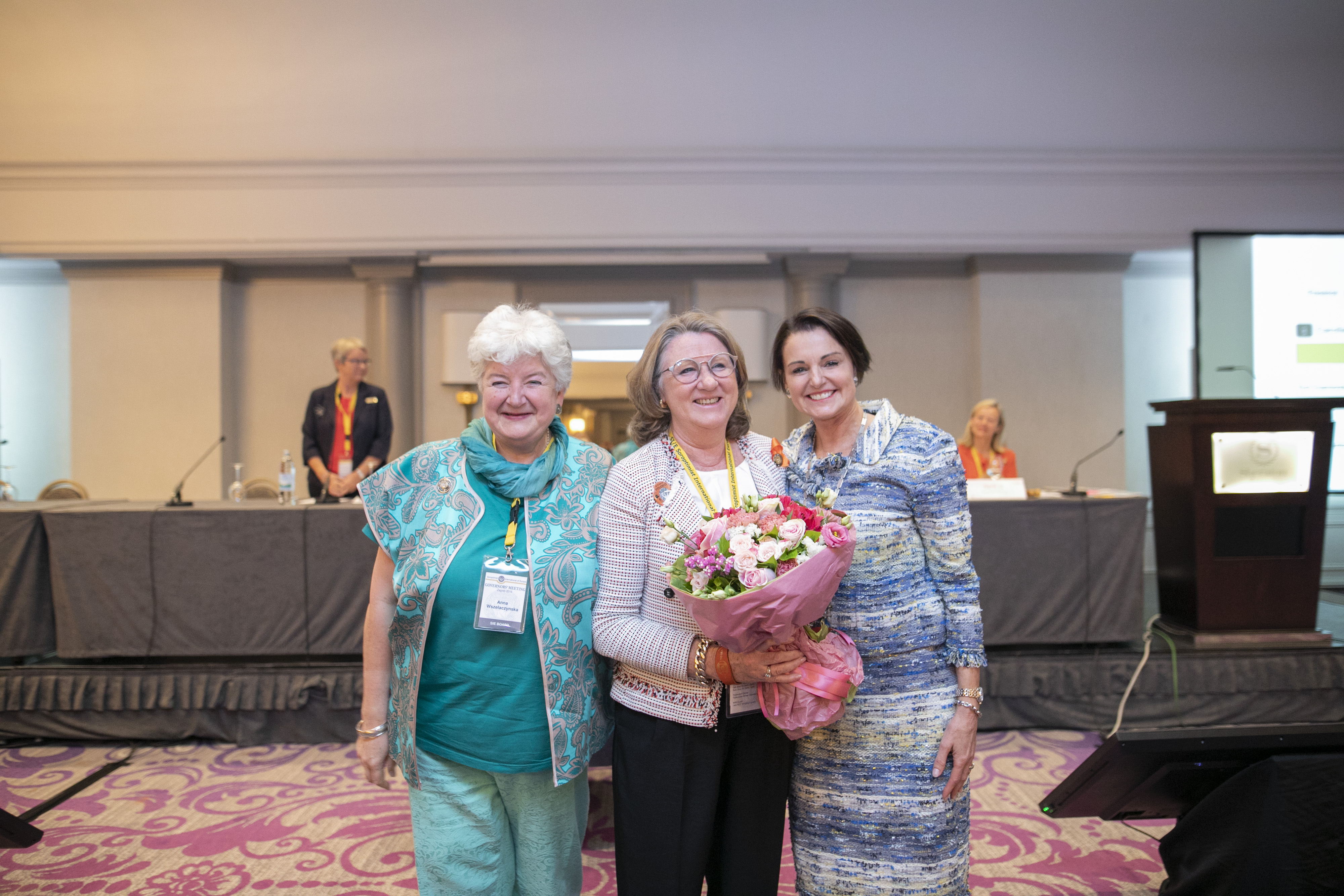 The change of insignia was a symbolic moment connecting the present and the future. President Elect Anna Wszelaczynska embodied this spirit in her biennium speech, especially by carrying on the motto “We Stand Up for Women” into her biennium. She also expressed that mentoring is the “best way to rejuvenate our organisation” and stressed that we need more coherence and consistency as we need to “speak with one voice.”