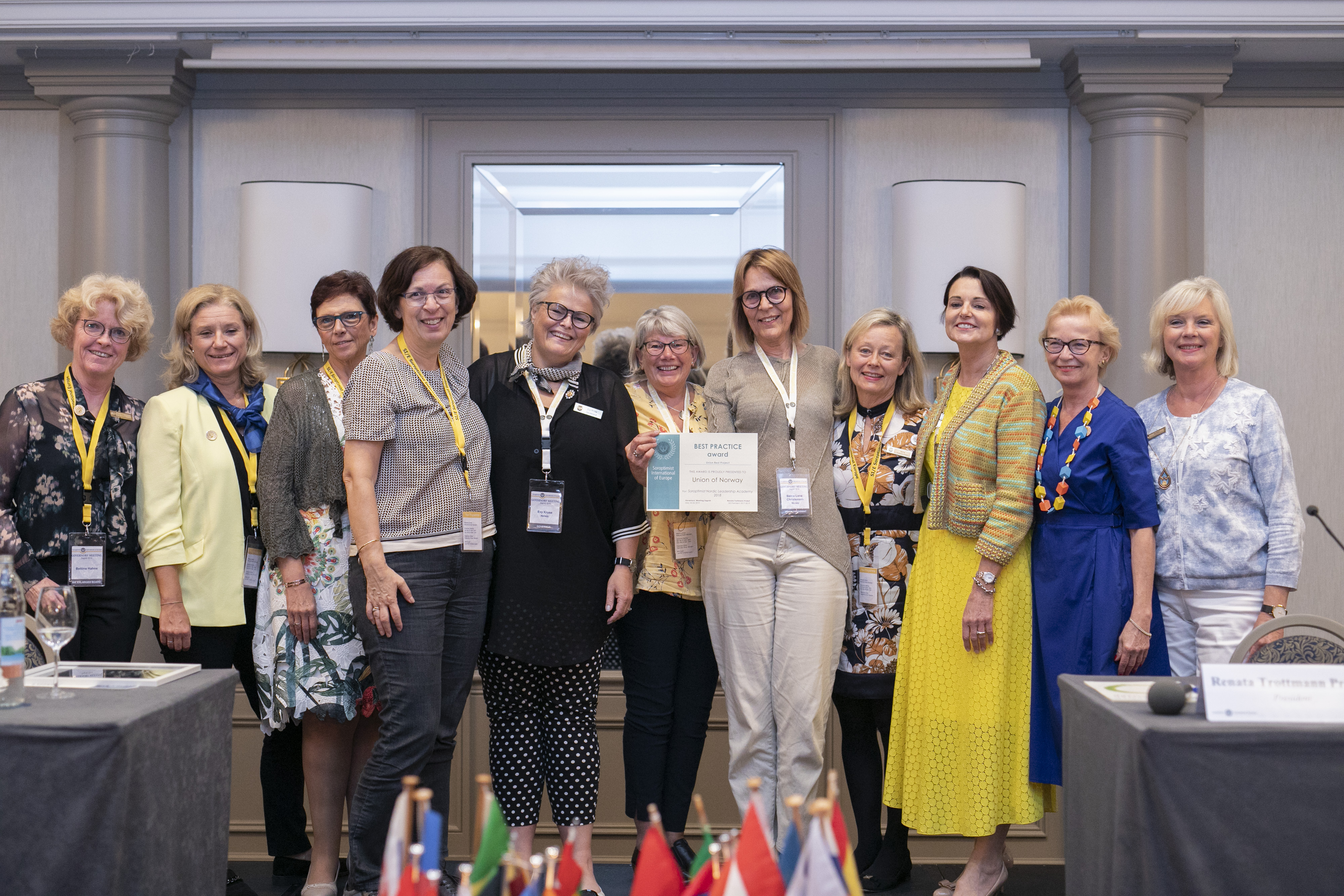 L to R: Bettina Hahne, Sabine Mach, Gerda Rosiers, Britt Nordgreen, Evy Kruse, Grethe Mary Soerensen, Bente Lene, Sigrid Ag, Renata Trottmann Probst, Ingeborg Dietz and Inge Withof. The Union of Norway won the award for Union Best Project.